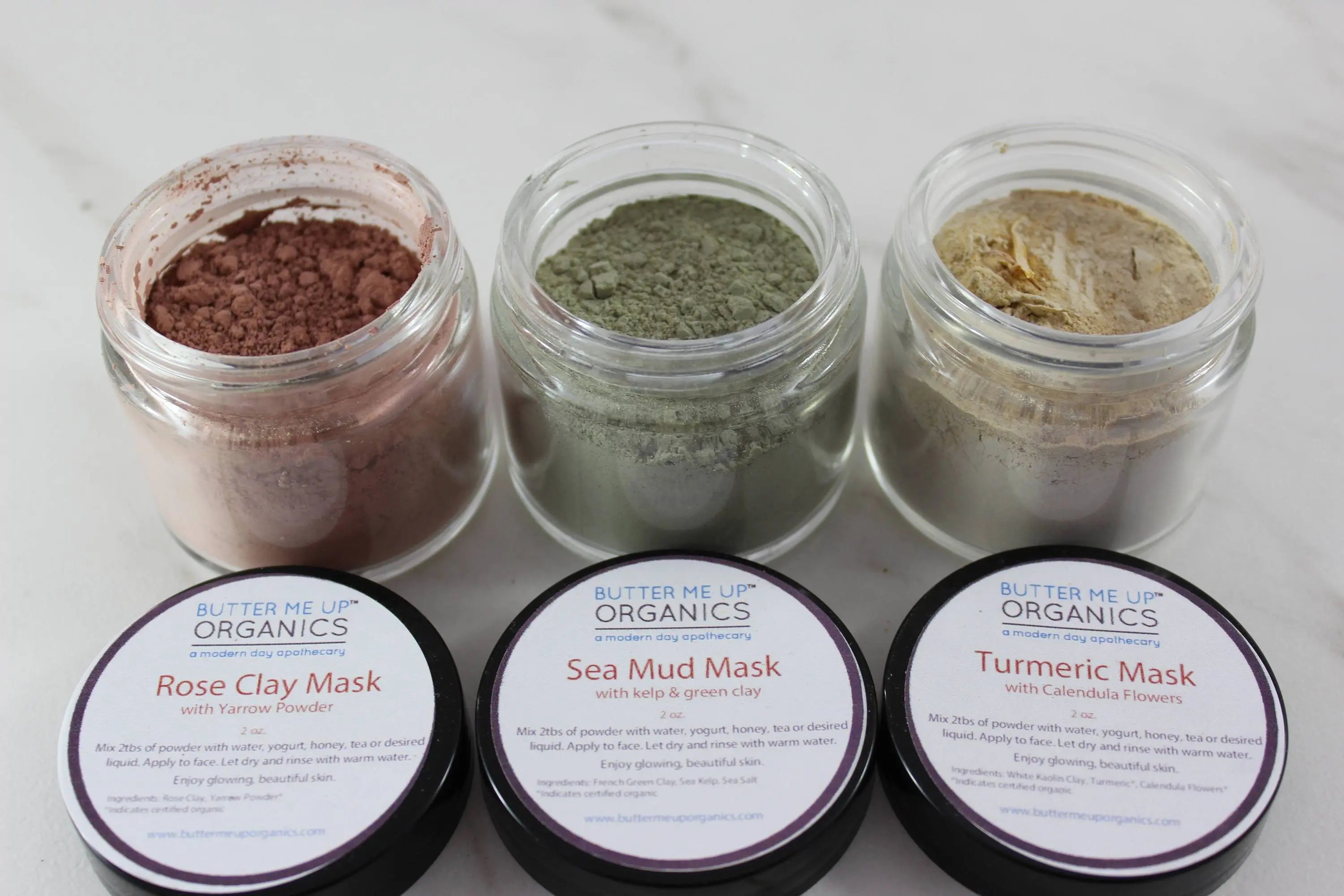 Clay Face Mask Trio Rose Clay French Green Clay Kaolin Clay Turmeric
