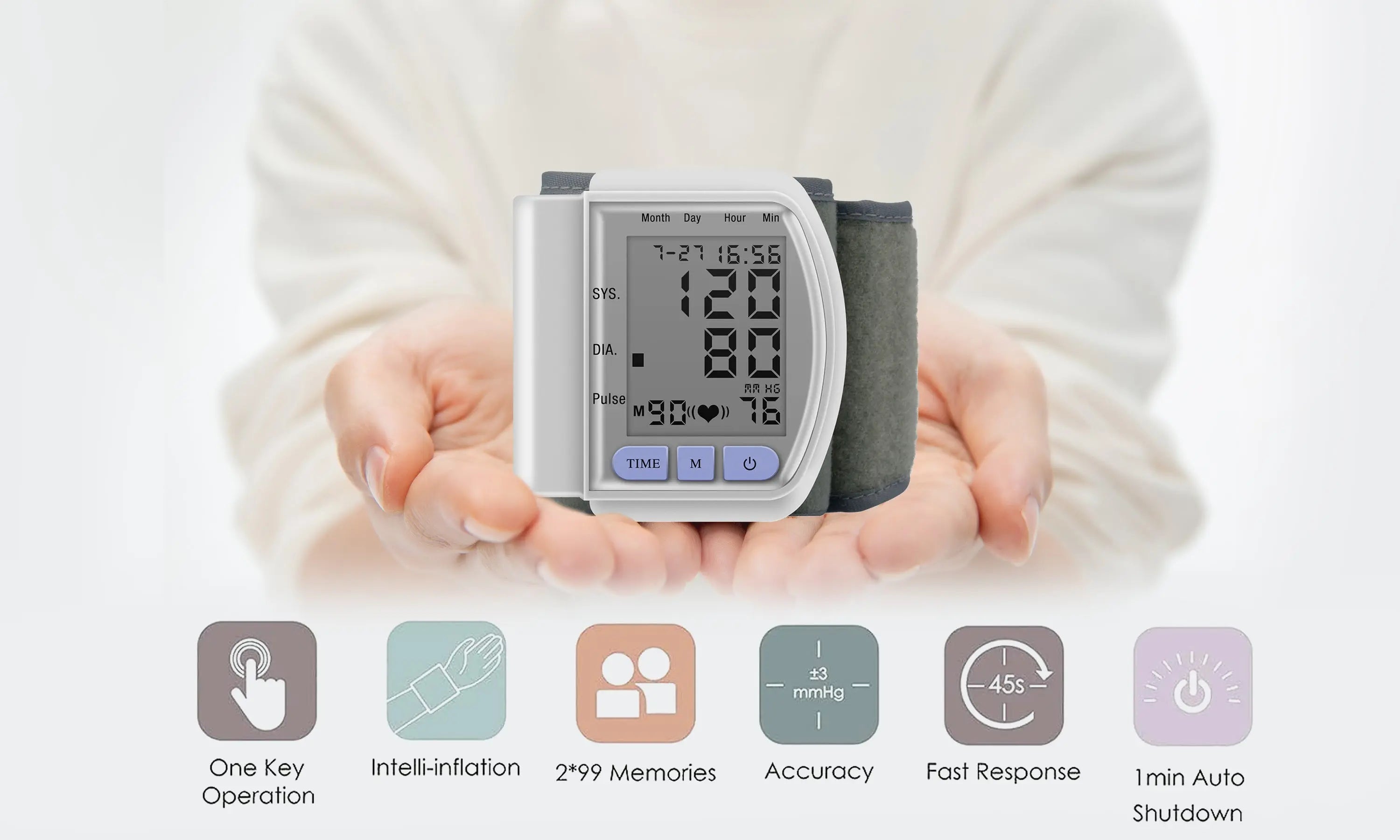 Blood Pressure Monitor: Equipped with high-precision sensors for real-time blood pressure tracking. Easy to use with one-touch measurement and a clear, large display, helping you keep track of your cardiovascular health.